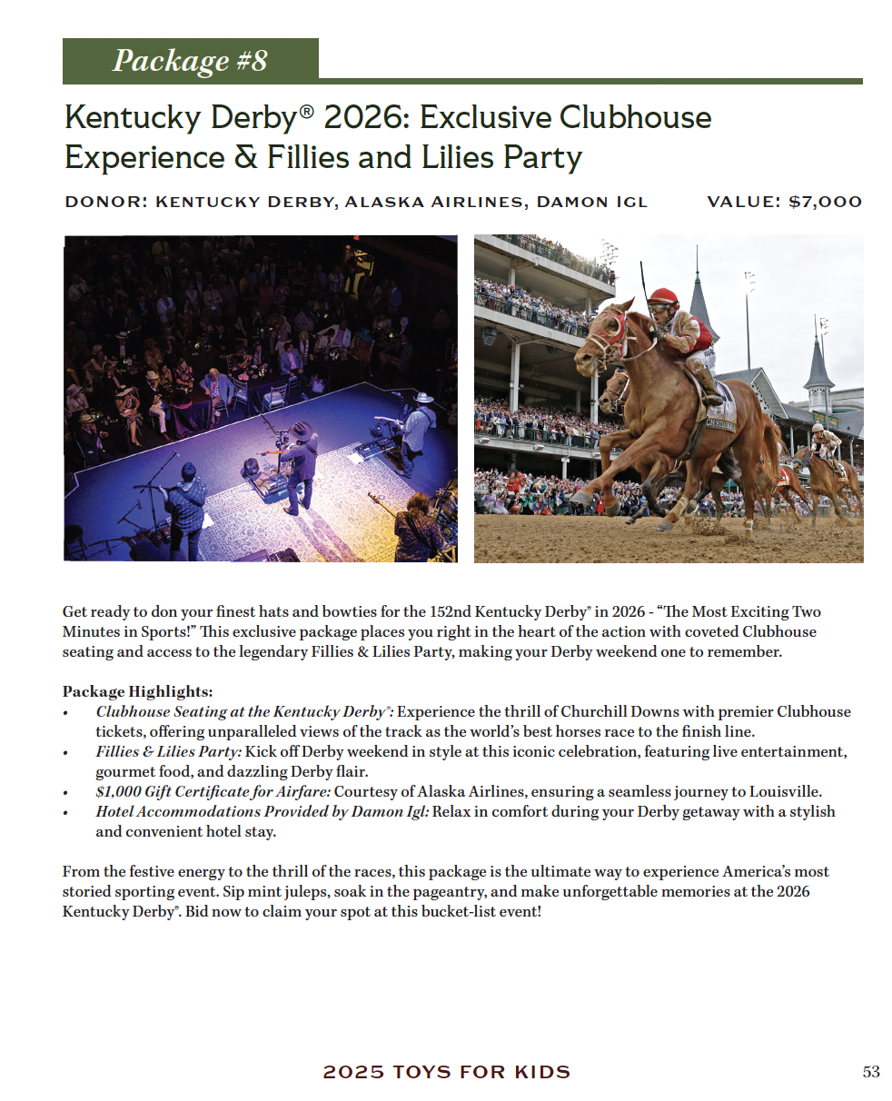 Get ready for an enchanting evening at the 2025 Toys for Kids The Polar Express Winter Gala! As the anticipation builds, we're thrilled to offer you an exclusive sneak peek at our electrifying Live Auction Preview.